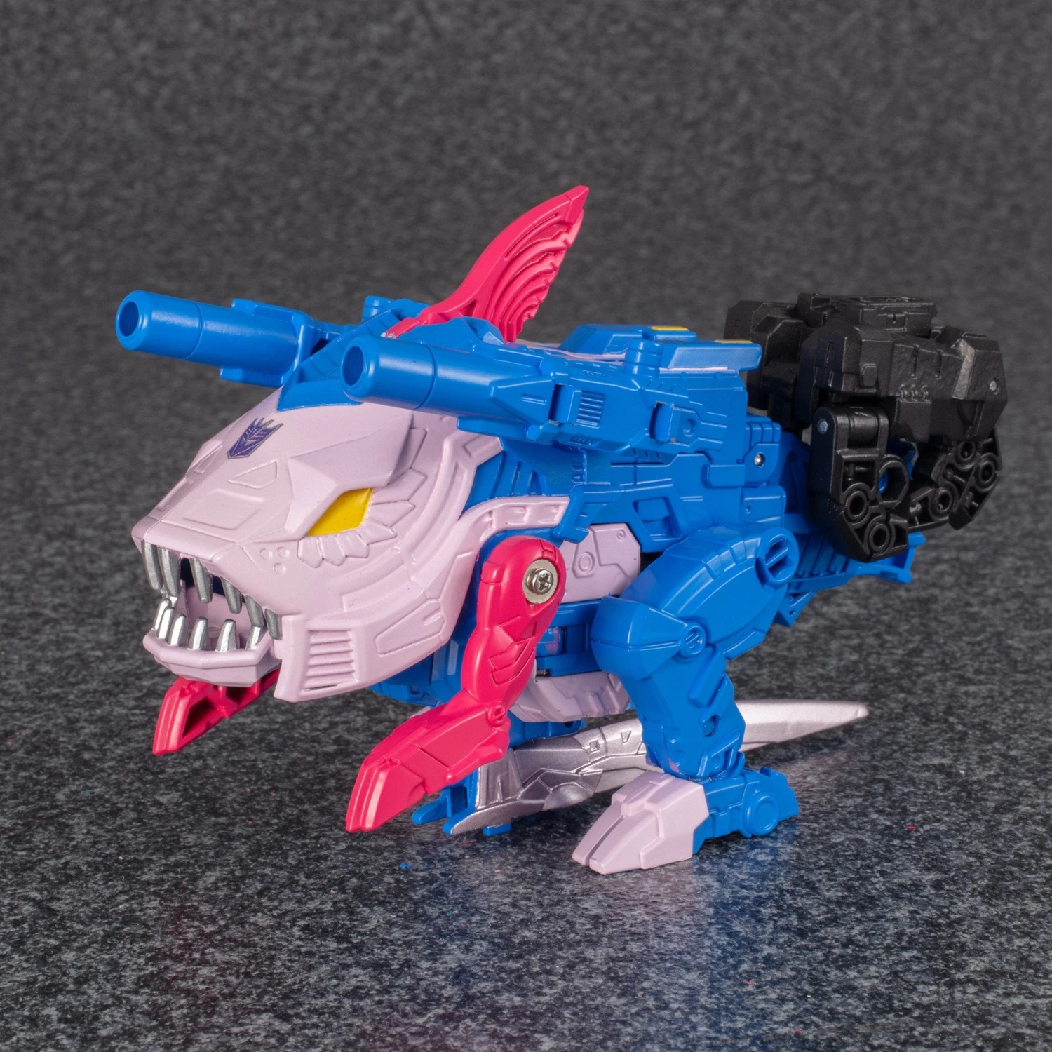 The Transformers Generations Selects Gulf (Skalor) is part of the Seacons team and transforms from robot to monster fish. Gulf (Skalor) is also part of the King Poseidon (Piranacon) combiner figure and typically becomes the right leg, but this version can also attach as an arm or weapon for King Poseidon (Piranacon).